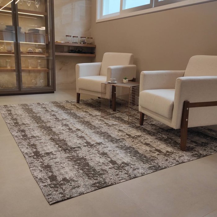 Tapete Cinza Mesclado Para Sala 200x250 Antiderrapante Algodão Grande Odessa Jacquard