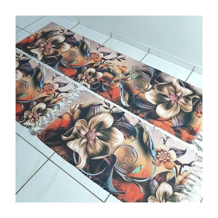 Tapete Cozinha 3 Peças Tear Elétrico Sublimado Flor Dourada