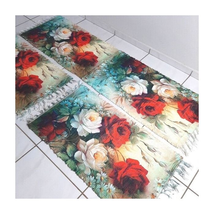 Tapete Cozinha 3 Peças Tear Elétrico Sublimado Flor Vermelha