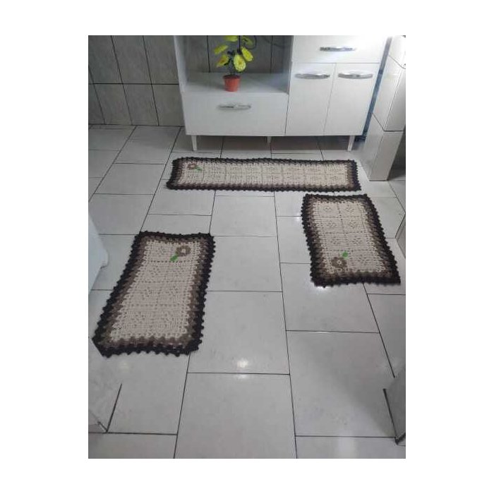 Tapete Crochê Kit Passadeira Primavera Criativa Cor: Marrom e Bege Conforme as fotos ilustrativas.