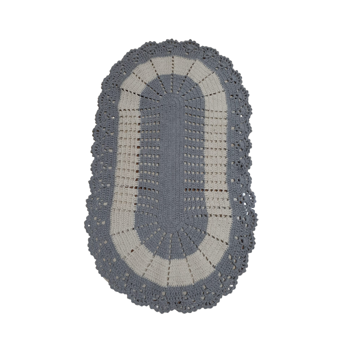 Tapete crochê Oval sala quarto Cozinha branco Azul 60x40