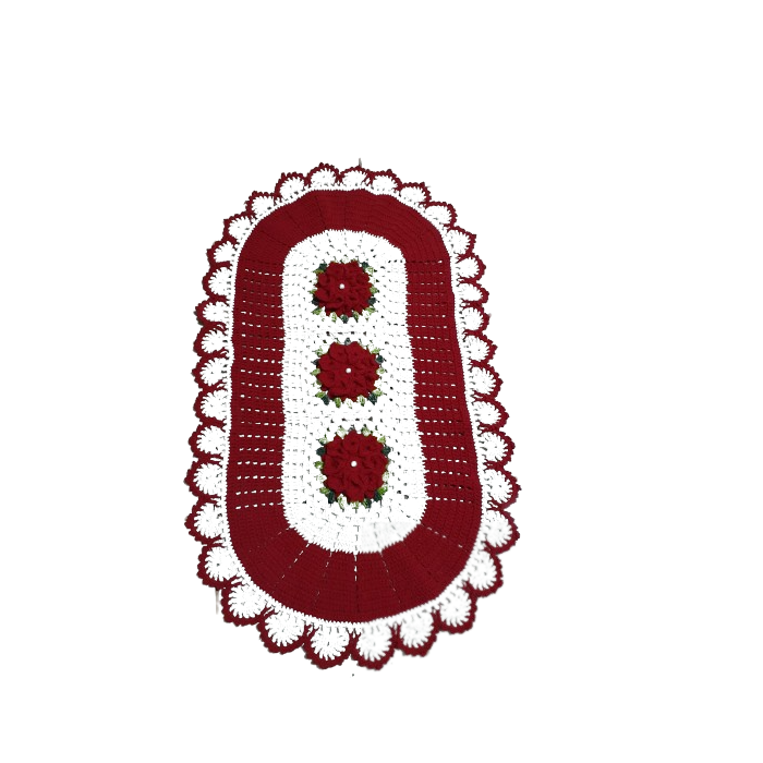 Tapete crochê Oval sala quarto Flores branco Vermelho 69x50