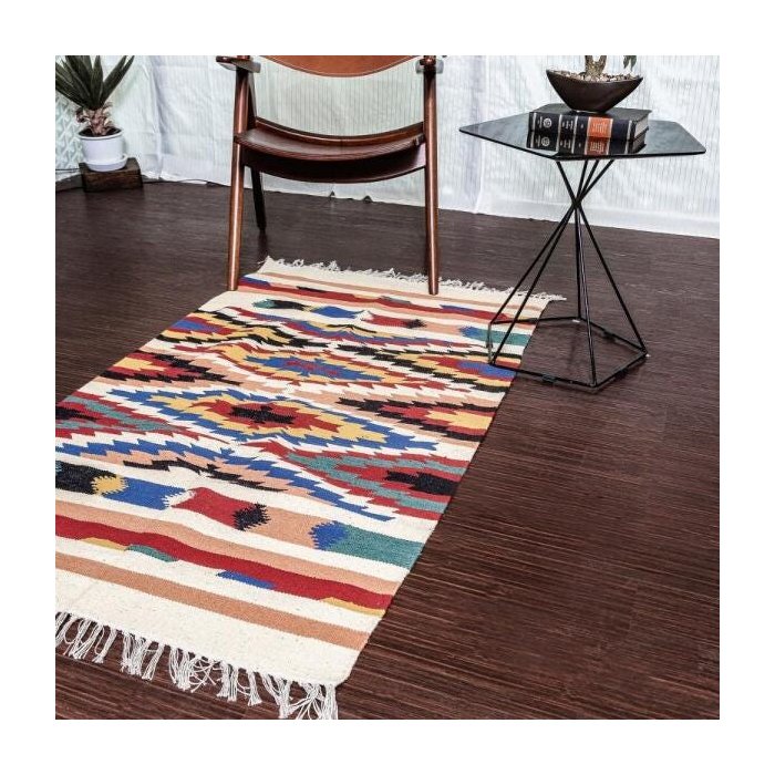 O Tapete Losango é feito artesanalmente com algodão natural, tem toque macio e sua estampa é formado por losangos em ondas. Seu design a torna uma peça de destaque, perfeita para compor a decoração de salas de estar, salas de jantar e hall de entrada. Possui franjas nas extremidades