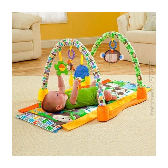 Este super Ginásio possui 3 modos de brincar. Seja com o bebê de barriga para cima, deitado de bruços ou engatinhando, a diversão é garantida! O tapete do ginásio pode virar um arco que incentiva o bebê a engatinhar.
