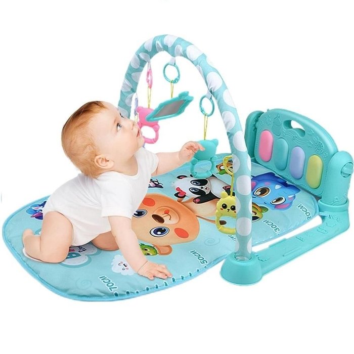 Tapete de Atividades para Bebê, Ginásio Infantil com Piano Musical, Mobile Interativo, Portátil e Mu Azul