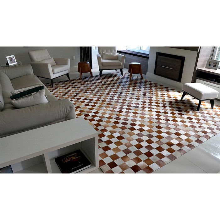 Tipo: Tapete de Couro Material: Couro bovino legítimo Modelo: Alcoa Ambientes: Quarto, sala de estar, sala de jantar Tamanho do recorte: 10x10 cm Padrão do Recorte: Quadriculado Desenho: Tabuleiro Peso: ~1,7 kg/m² Espessura: 5mm Costuras: Zig-Zag Bordas: Borda Infinita Forro: Sim Material do Forro: 100% EVA Tons de Cores: Bege/Champanhe Importante! Os tons de cores são naturais e garantem a autenticidade do couro e exclusividade da sua peça. Sendo assim, podem ter pequenas variações daquelas exibidas neste anúncio. Cuidados e Limpeza com o Tapete de couro Alcoa Para uma maior durabilidade do seu Tapete de couro Alcoa não é indicado: lavar, enxaguar, alvejar e expor a altas temperaturas. Isso porque pode danificar seu Tapete. As peles utilizadas para produção dos Tapetes, passam por um processo especializado, não permitindo que retenha odor ou manche, e isto também proporciona uma mais fácil higienização. A sua limpeza é feita apenas com pano seco ou pano úmido, cuidadosamente pode se utilizar um sabão neutro, mas sem enxaguar o Tapete, também é indicado aspirar diariamente, para limpar qualquer sujeira sobre o Tapete que possa vir a criar algum atrito. Evite molhar.