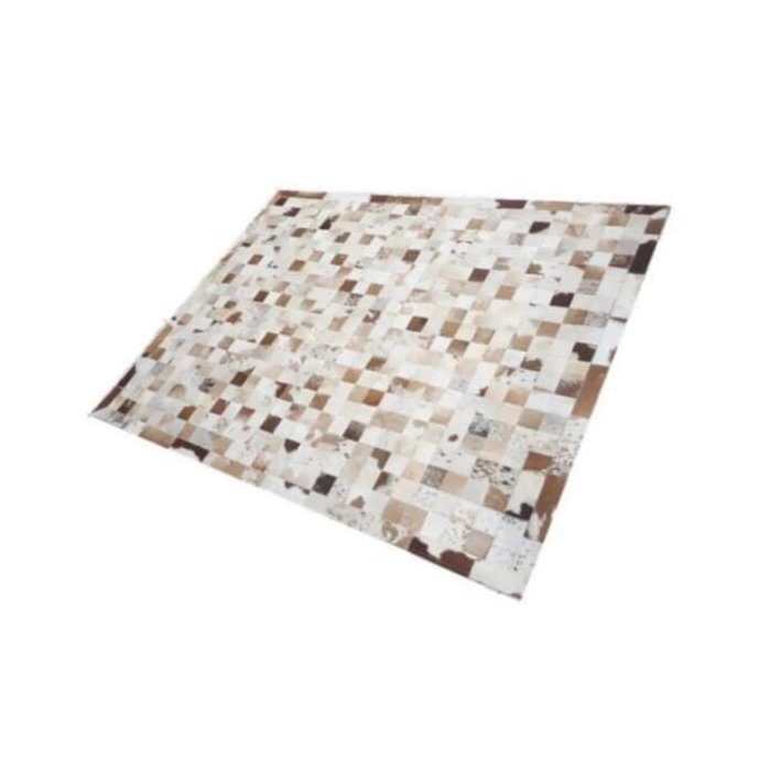 Tapete de Couro de Boi 2,5M x 2,0M 7cm x 7cm com Borda Branco e Marrom