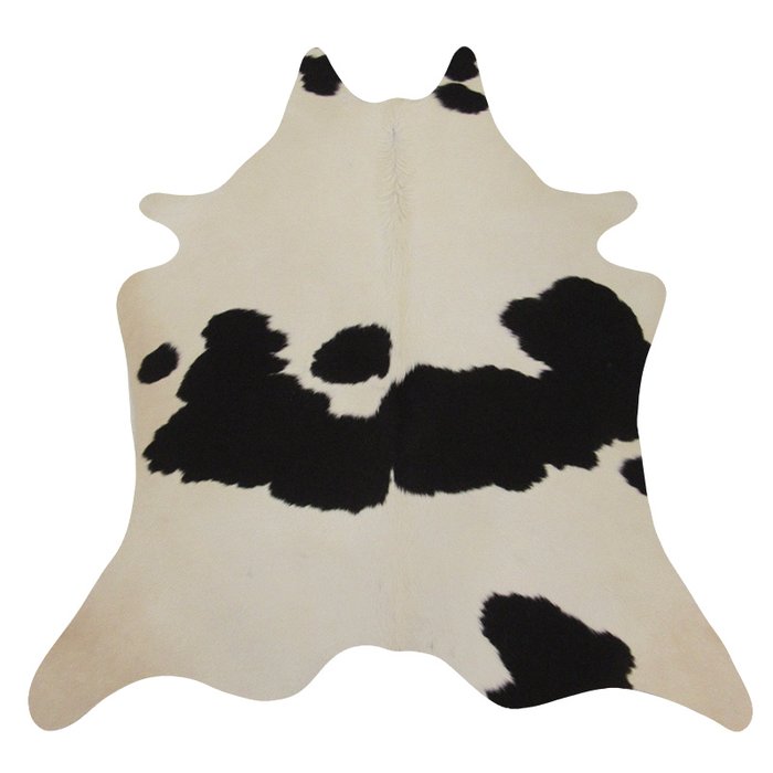 Tapete de couro de boi. Pele bovina natural. L 1,70 x C 1,80 m. Preto e branco. P1639