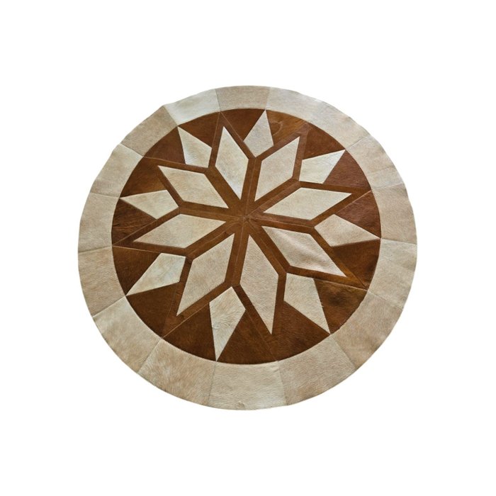 Tapete de Couro Natural Mandala Bege Branco 1,60 Diametro
