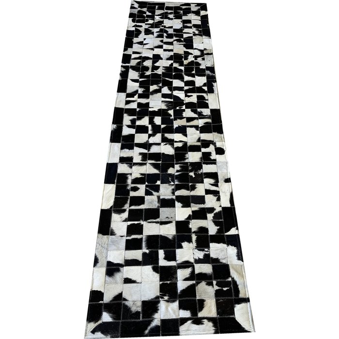 Tapete De Couro preto branco malhado 0,60x2,50 com bordas