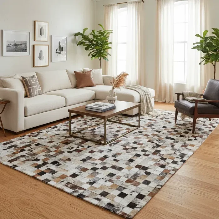 Tapete de Couro Quadriculado 2,00 X 1,50 M Mesclado Tricolor