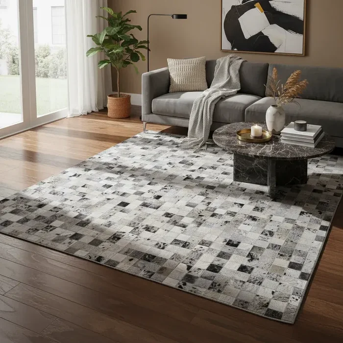 Tapete de Couro Quadriculado 2,00 X 1,50 M Salino Preto Salino Natural