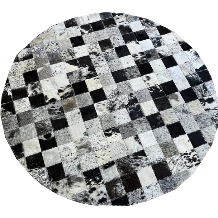 Tapete de Couro Redondo Preto Branco Salino 1,00 Diâmetro Sb