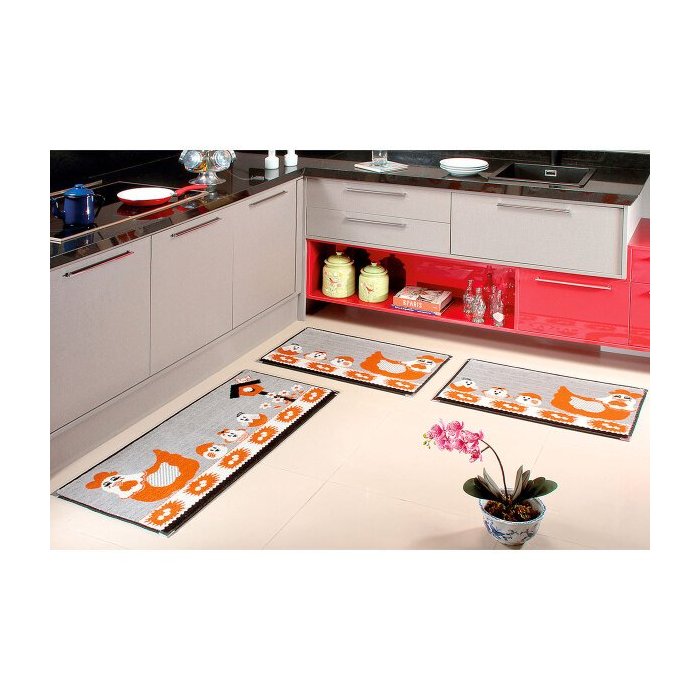 Tapete de Cozinha Galinha Estampado 3 Peças Antiderrapante