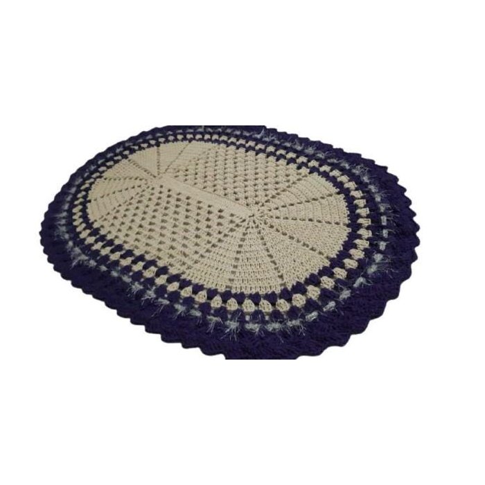 Tapete de crochê oval branco e azul Artesanal