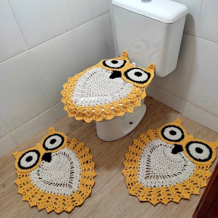 Jogo de Tapetes de Crochê para Banheiro Modelo Coruja