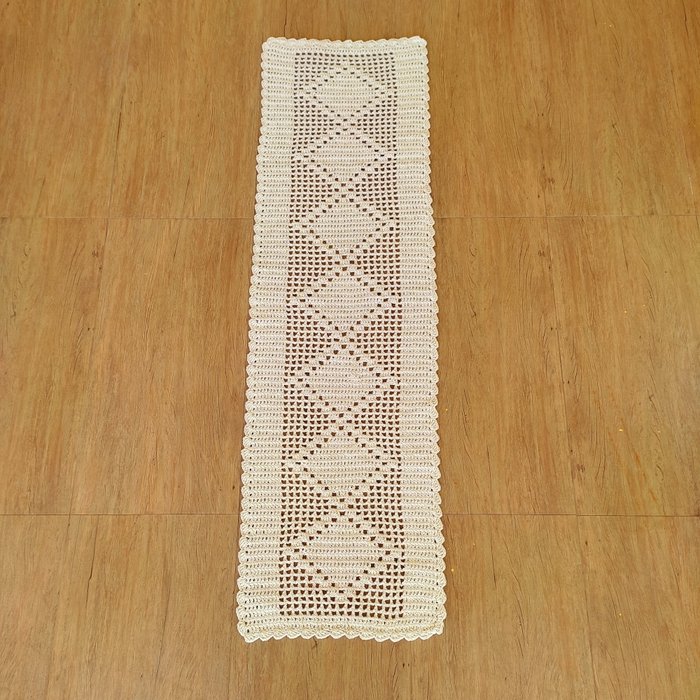 1 tapete de crochê de 150 x 50 cm.