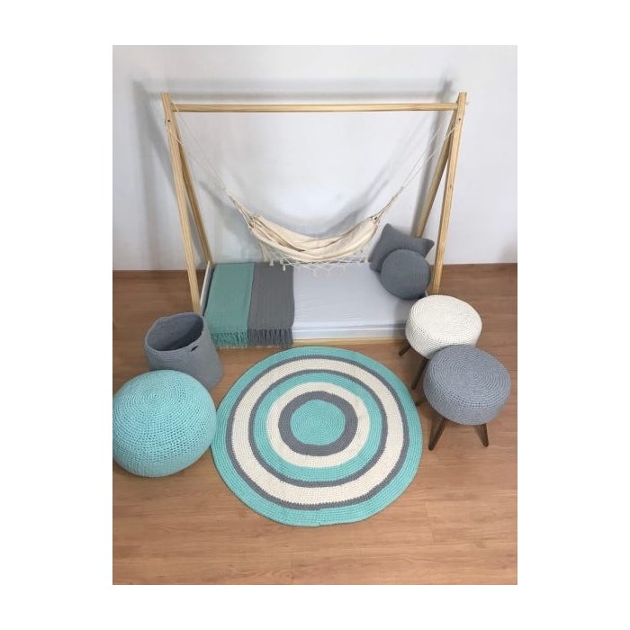 O Tapete é 100% algodão e confeccionado através do crochê manual. É um produto muito utilizado em quartos infantis por trazer delicadeza, qualidade e conforto. Clássico para qualquer ambiente de sua escolha.