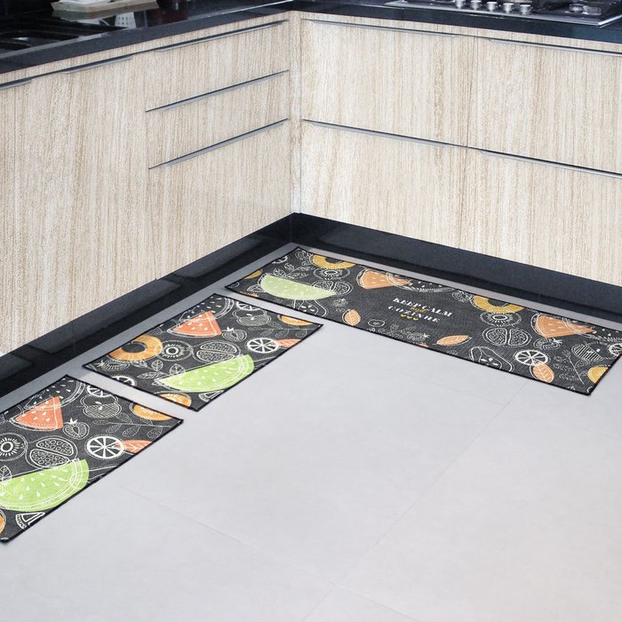 Tapete de Tecido de Cozinha Keep Calm and Cozinhe Kit com 3 pçs