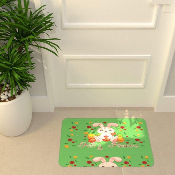 Tapete Decorativo Emborrachado Verde Feliz Páscoa Coelho Alegre 60x40cm