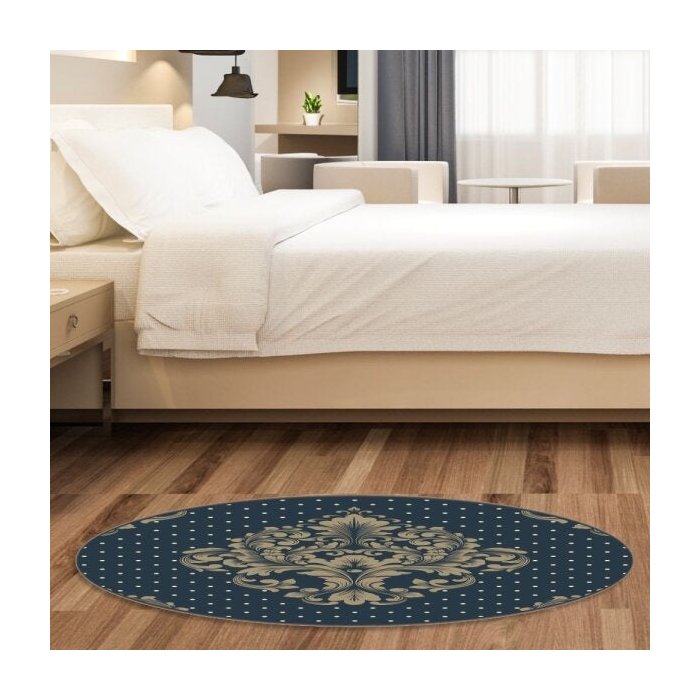 Tapete Emborrachado Oval Arabescos com Detalhes em Bolinha - 70x90cm