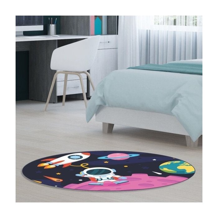 Tapete Emborrachado Oval Astronauta e Foguete - 70x90 cm -