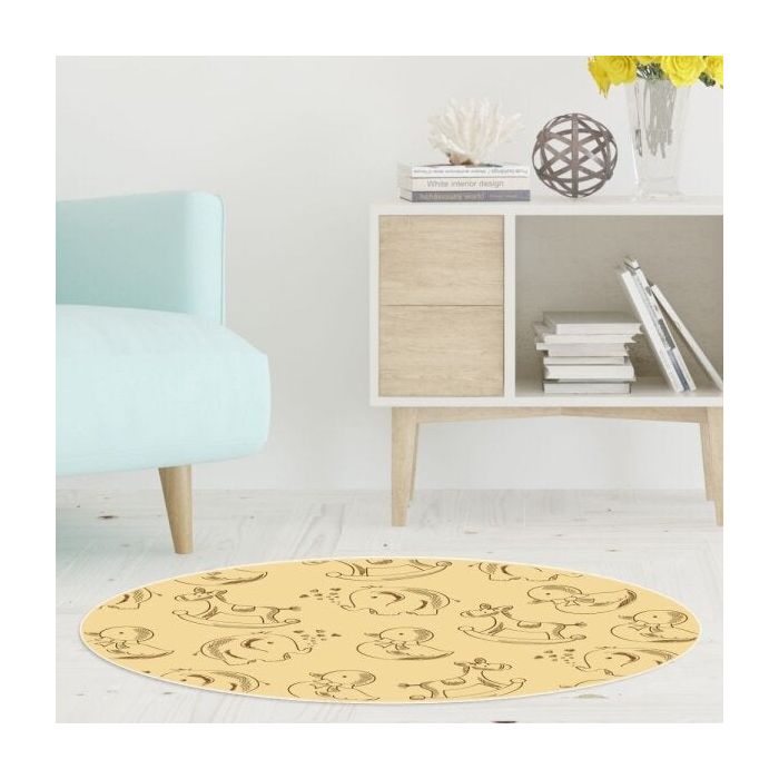 Tapete Emborrachado Oval Brinquedos Animais - 70x90cm
