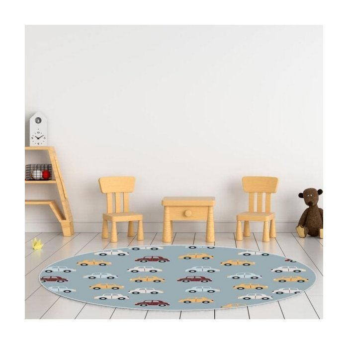 Tapete Emborrachado Oval Carros - 70x90cm