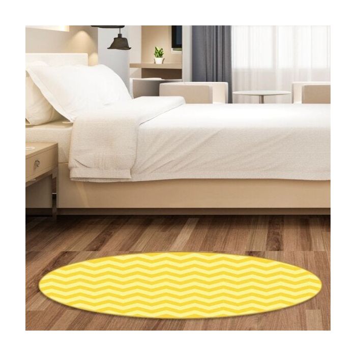 Tapete Emborrachado Oval Chevron Amarelo - 70x90 cm -