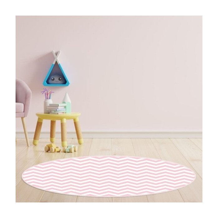 Tapete Emborrachado Oval Chevron Rosa - 70x90cm
