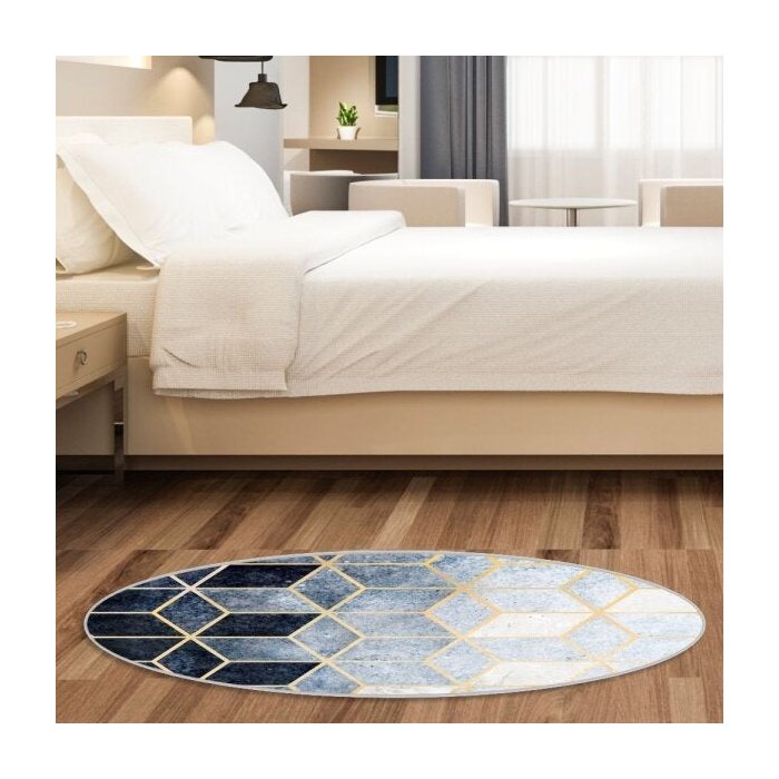 Tapete Emborrachado Oval Cubos Gold - 70x90cm
