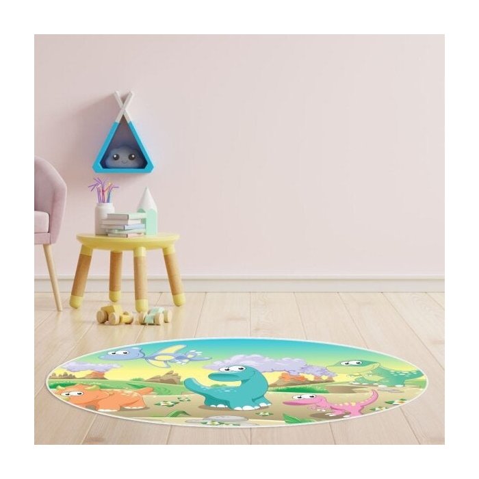 Tapete Emborrachado Oval Dinossauro Natureza - 70x90cm