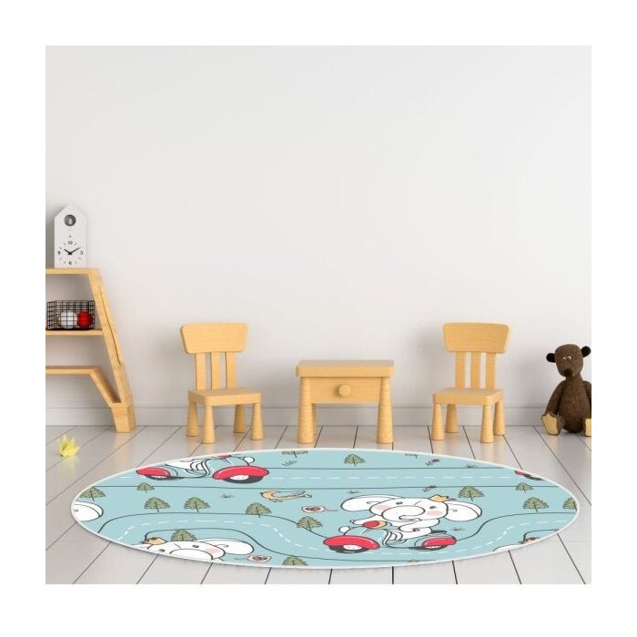 Tapete Emborrachado Oval Elefantinho Passeando - 70x90cm