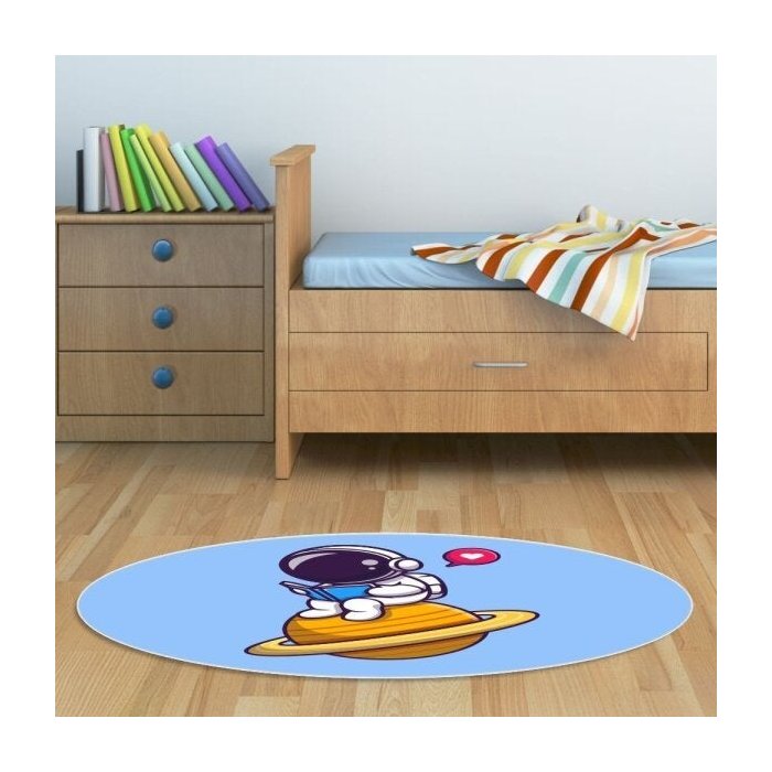 Tapete Emborrachado Oval Estudando na Lua - 70x90 cm -