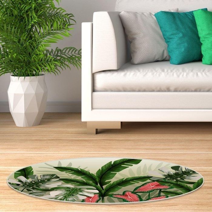 Tapete Emborrachado Oval Folha de Bananeira de Costela de Adão - 70x90 cm -