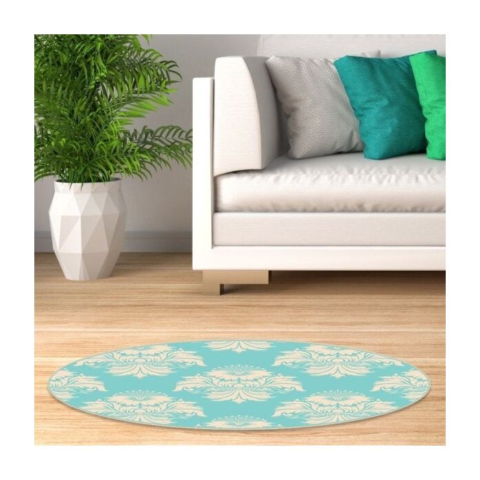 Tapete Emborrachado Oval Fundo Tiffany Arabescos - 70x90cm