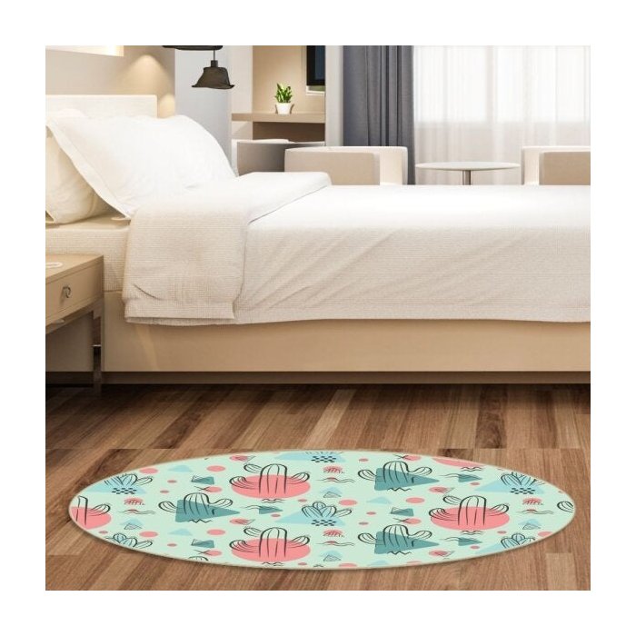 Tapete Emborrachado Oval Geométrico e Cactos - 70x90cm