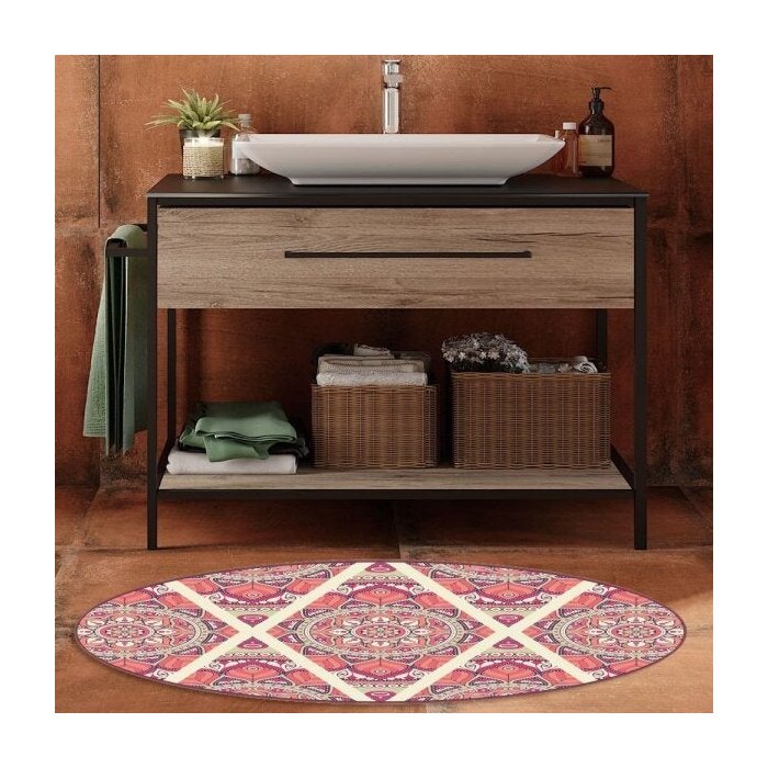 Tapete Emborrachado Oval Mandala Salmão - 70x90cm