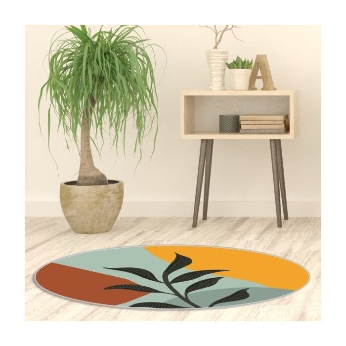 Tapete Emborrachado Oval Raminho de Folha - 70x90cm