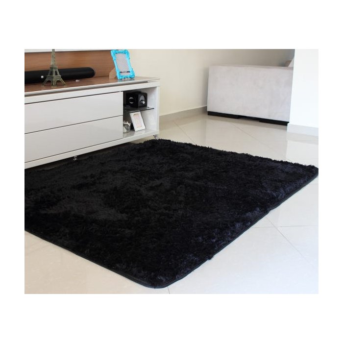 Tapete Felpudo Preto Liso - 2,00x2,00 (Pelo Alto Costa Oro)