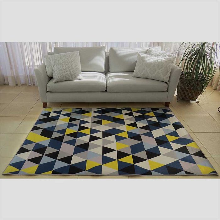 Tapete Geometrico Blue Triangule para Quarto 200x140 Casu
