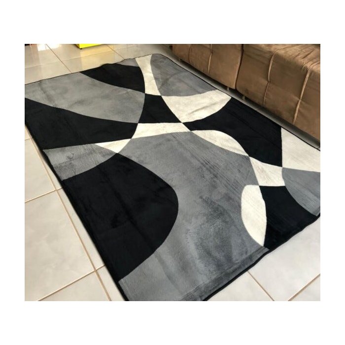 Tapete Geometrico Texfine 2,00 M x 1,40 M Antiderrapante - Preto com Cinza
