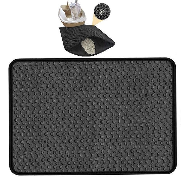 Tapete Higienico Coletor Areia Gato Pet Animais Petshop Anti Sujeira Casa limpa Chao Limpo LEVA PRA Preto
