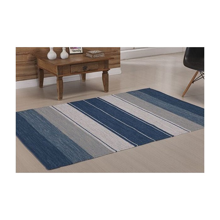 Tapete Indiano Kilim - Basar - 2,00m X 2,50m - 100% Algodão - Azul - Niazitex Azul