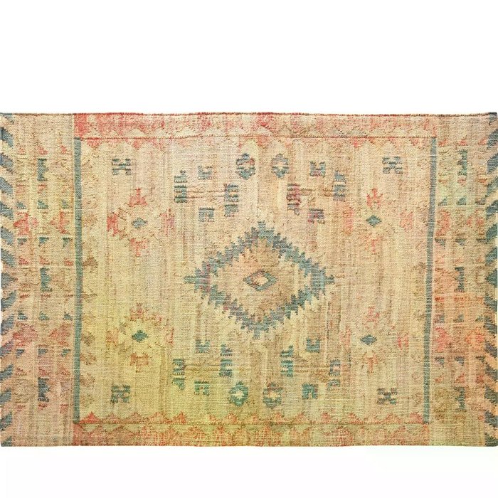 Acabamento: Tecelagem plana, trançado e costurado à mão, com desenho Kilim dupla face.