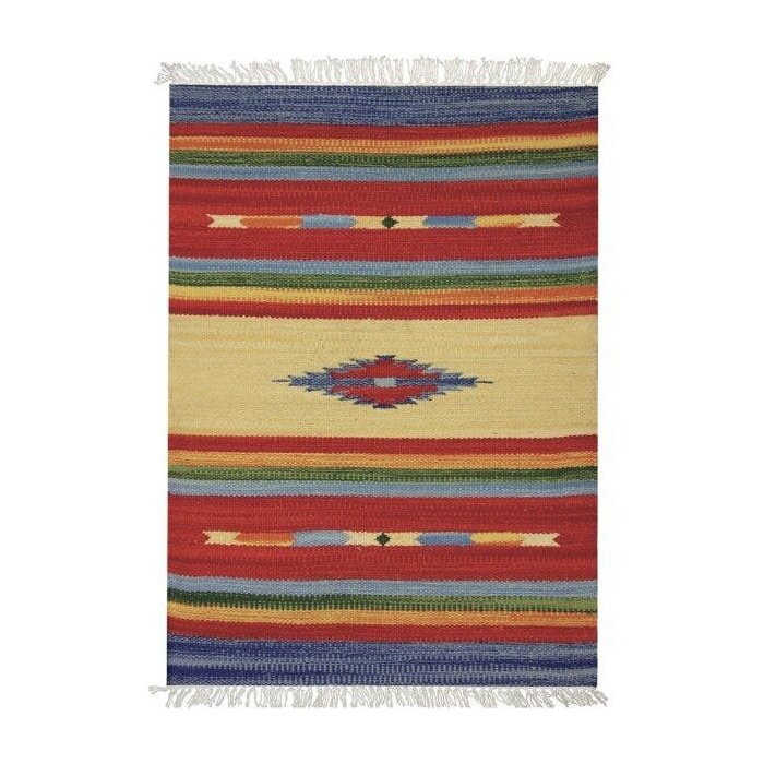 Tapete Indiano Retangular Algodão D4 Kilim 100x140cm Niazitex Colorido
