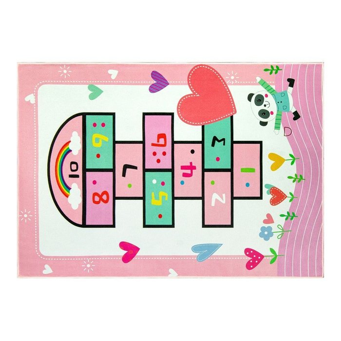 Tapete Infantil 1,00m X 1,40m Estampas Temáticas Quarto Kids Antiderrapante 100% Poliéster Rosa
