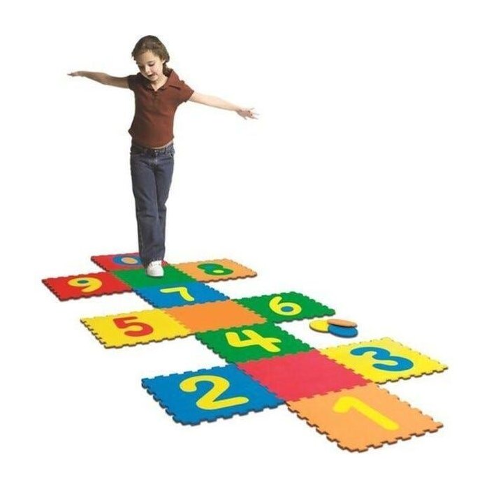 Uma amarelinha em eva, para as crianças brincarem e se divertirem com essa brincadeira tradicional.