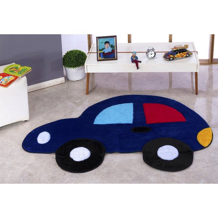Tapete Infantil Fusca Padrão 0,61x0,97cm Pelúcia Azul Royal Qu