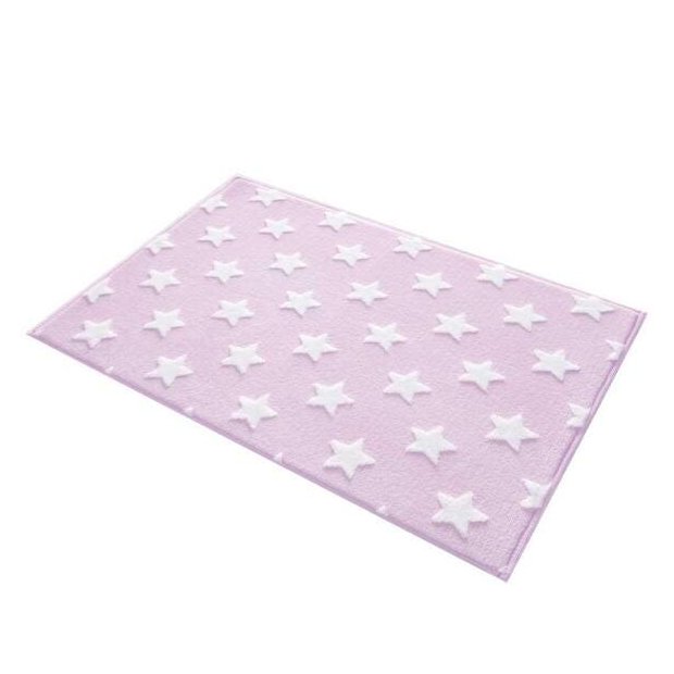 Tapete Infantil Jolitex Mimo Estrela Rosa 0,7x1,00m. Tapete Antiderrapante em relevo estrelas. Possui textura aveludada ideal para o quarto da criança. Características do Tapete: Superfície e base 100% poliéster, emborrachado com látex sintético antiderrapante.